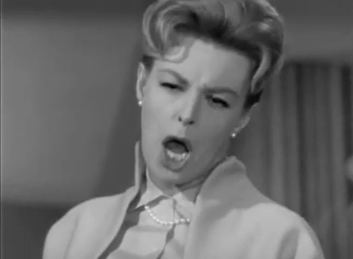 Once home, Gart hits the sauce right away…and why not? Coming down the stairs is his shrewish, social-climbing wife Janie (played with wonderful malice by Patricia Donahue). The old battle axe.