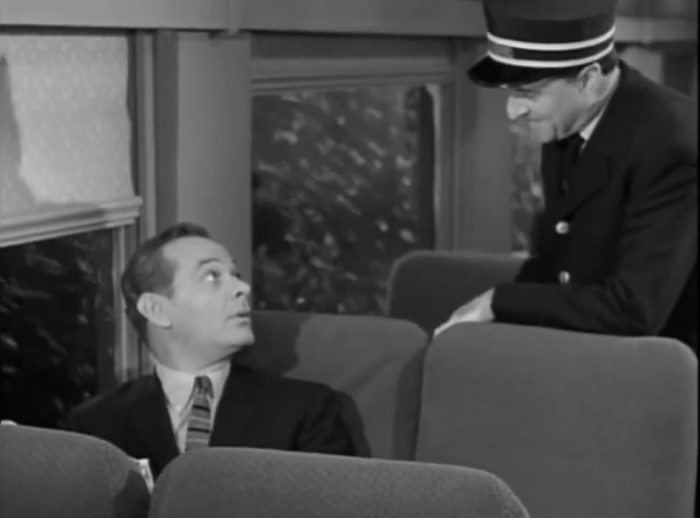 Our second train scene is at 14:53. Once more heading home, he’s startled by hearing “Willoughby” called out by the 1960 conductor. The train boss was just joshing with him saying he went through all his old employee timetables and couldn’t find such a stop or station.
