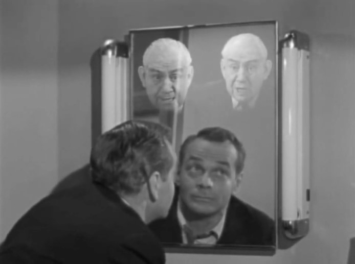 It’s not a train scene, but when you start seeing your boss in the mirror, it’s time to take up another occupation. Best facial contortions of the entire episode. Particularly from the boss.