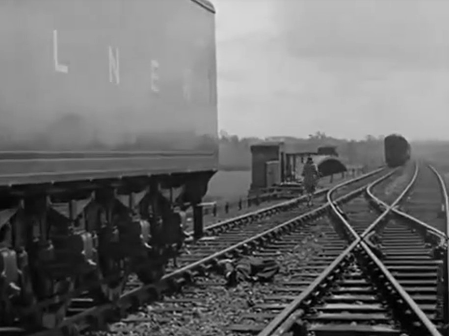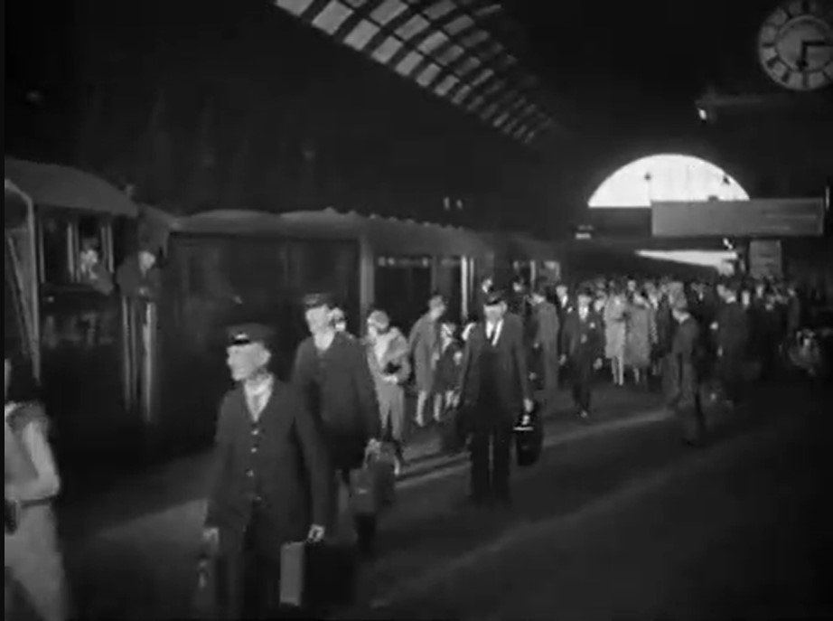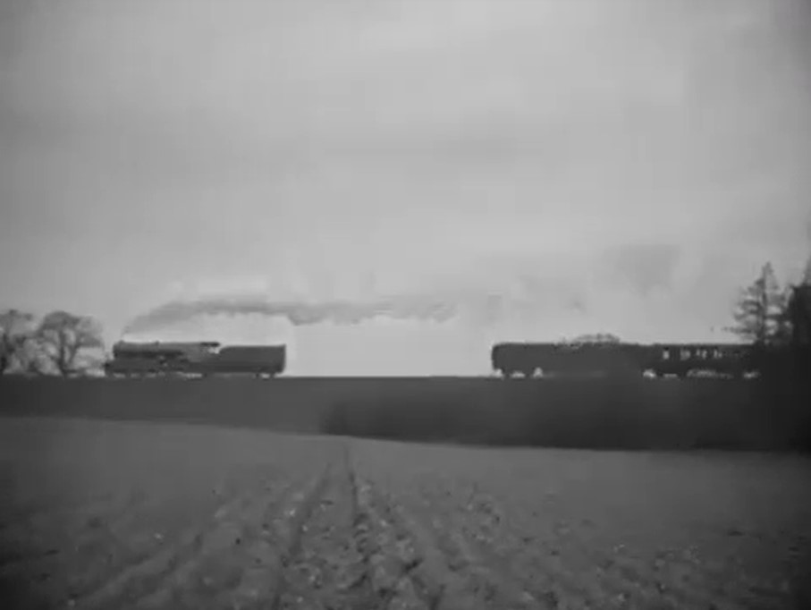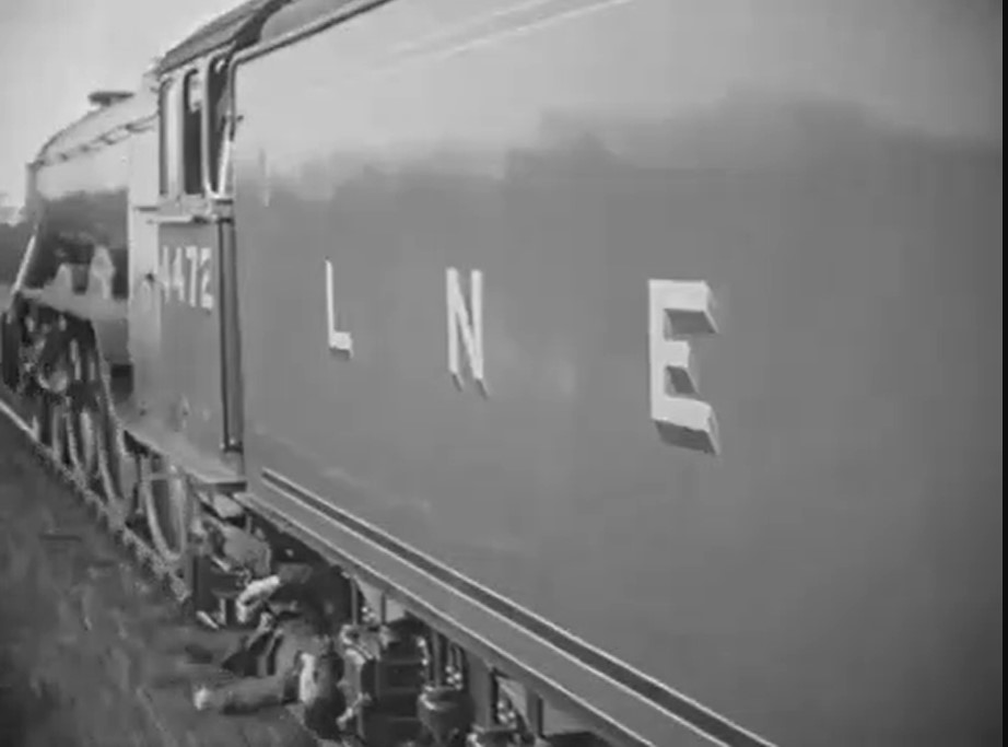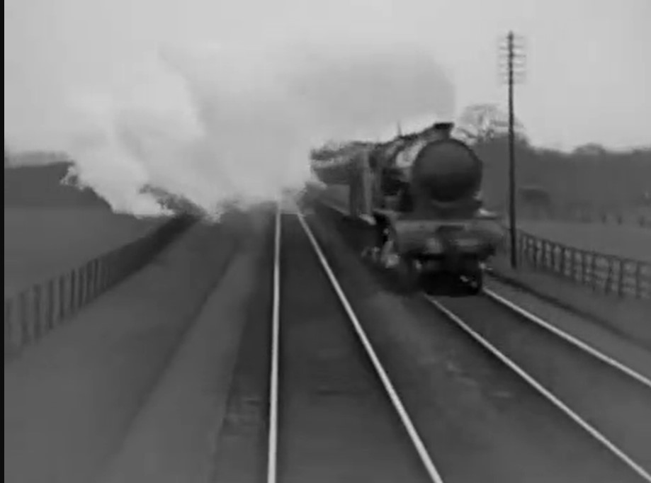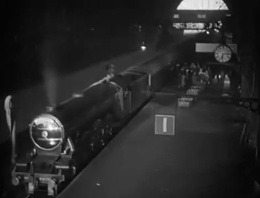 GO BIG GREEN! LNER #4473 steps smartly away from the platform with another trainload of her fans. Contrast this with a frame from the movie as it approaches the bumper post at King’s Cross. Same locomotive, many decades apart.