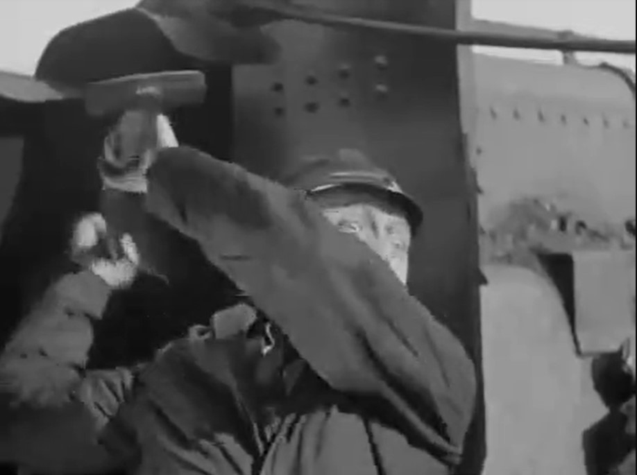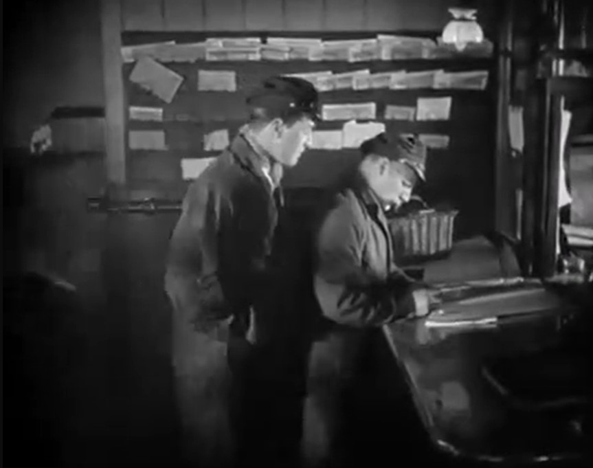Montage! Engineer Bob White (played by Moore Marriott) is reporting his Fireman to the division superintendent for drinking on the job. Fireman “Crow” [Boo! Hiss!] (played by Alec Hurley) leans waaaay back and takes a BELT of whiskey, then puts up his dukes after being confronted.