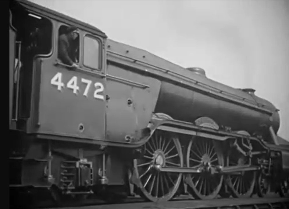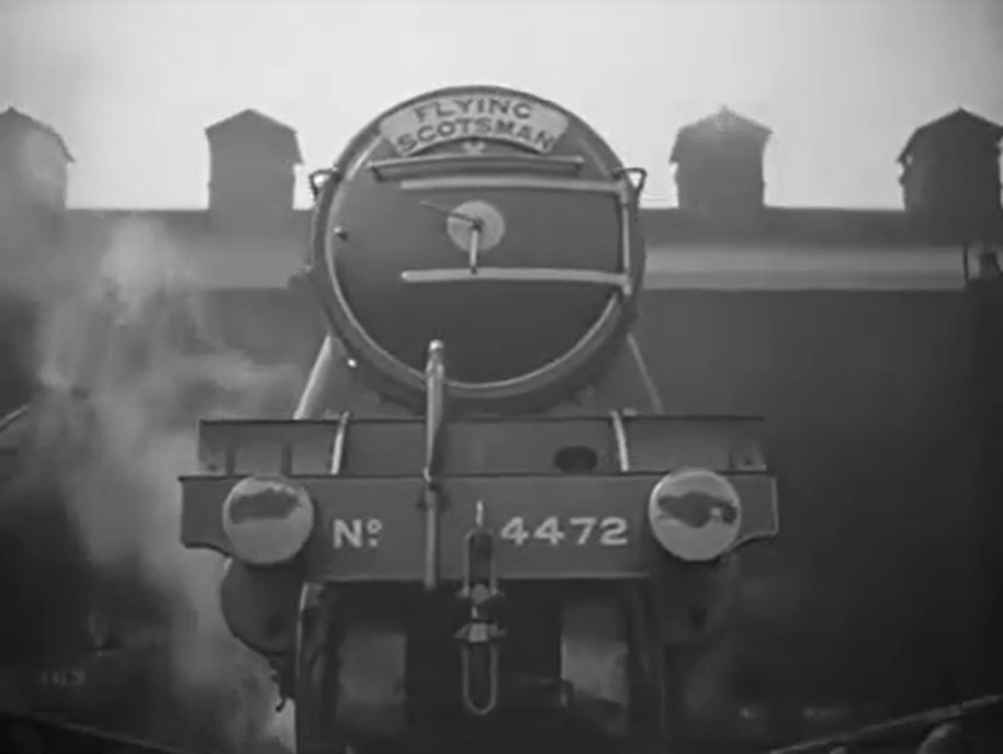 LNER #4472 was named after an existing passenger train between London (King’s Cross) and Edinburgh (Waverly). This film has it all. Forbidden romance. A villain bent on revenge. Treachery. Pungent overacting. AND…a thespian I’ve actually heard of, playing the hero. Let’s check out this tasty bit of crumpet!