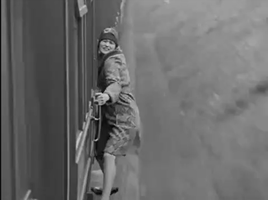 First some back story. Joan overheard Crow boasting of revenge against her daddy. She tails him to the station and seeing him board Scotsman at the last minute, yanks open a door on the moving train and jumps in.