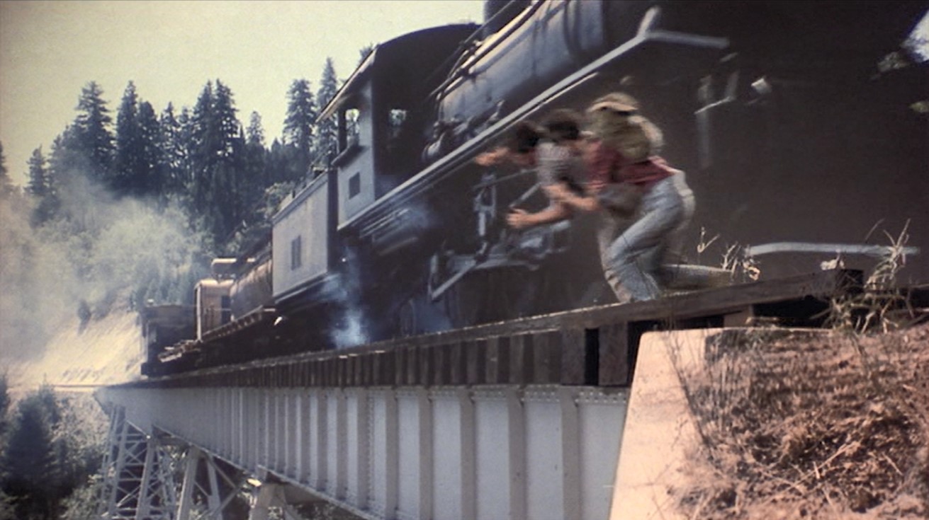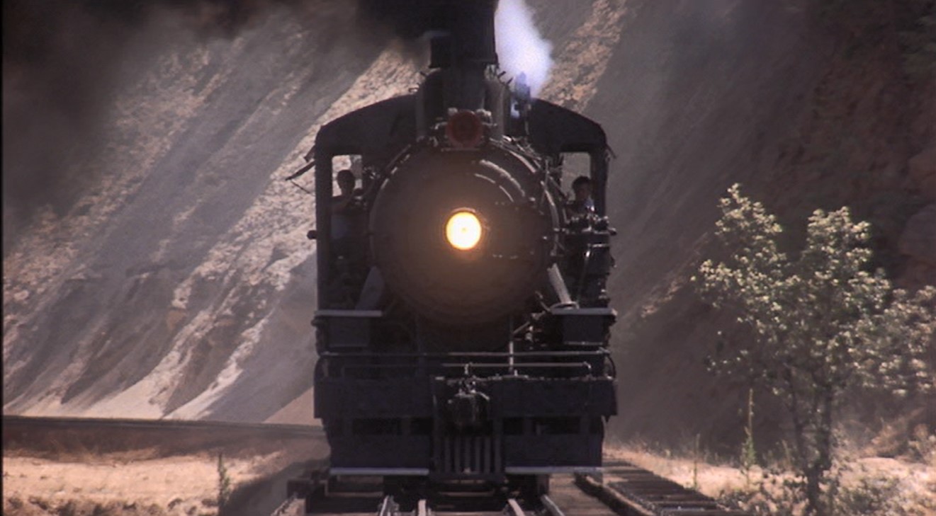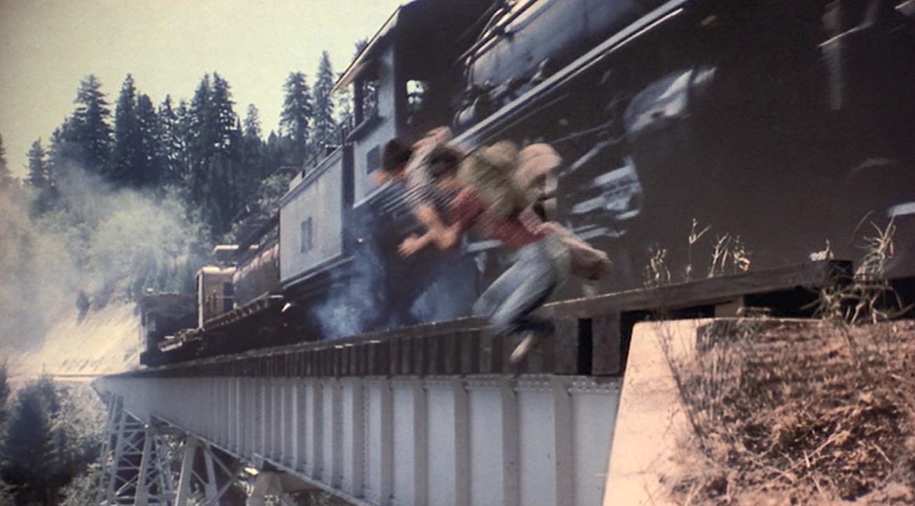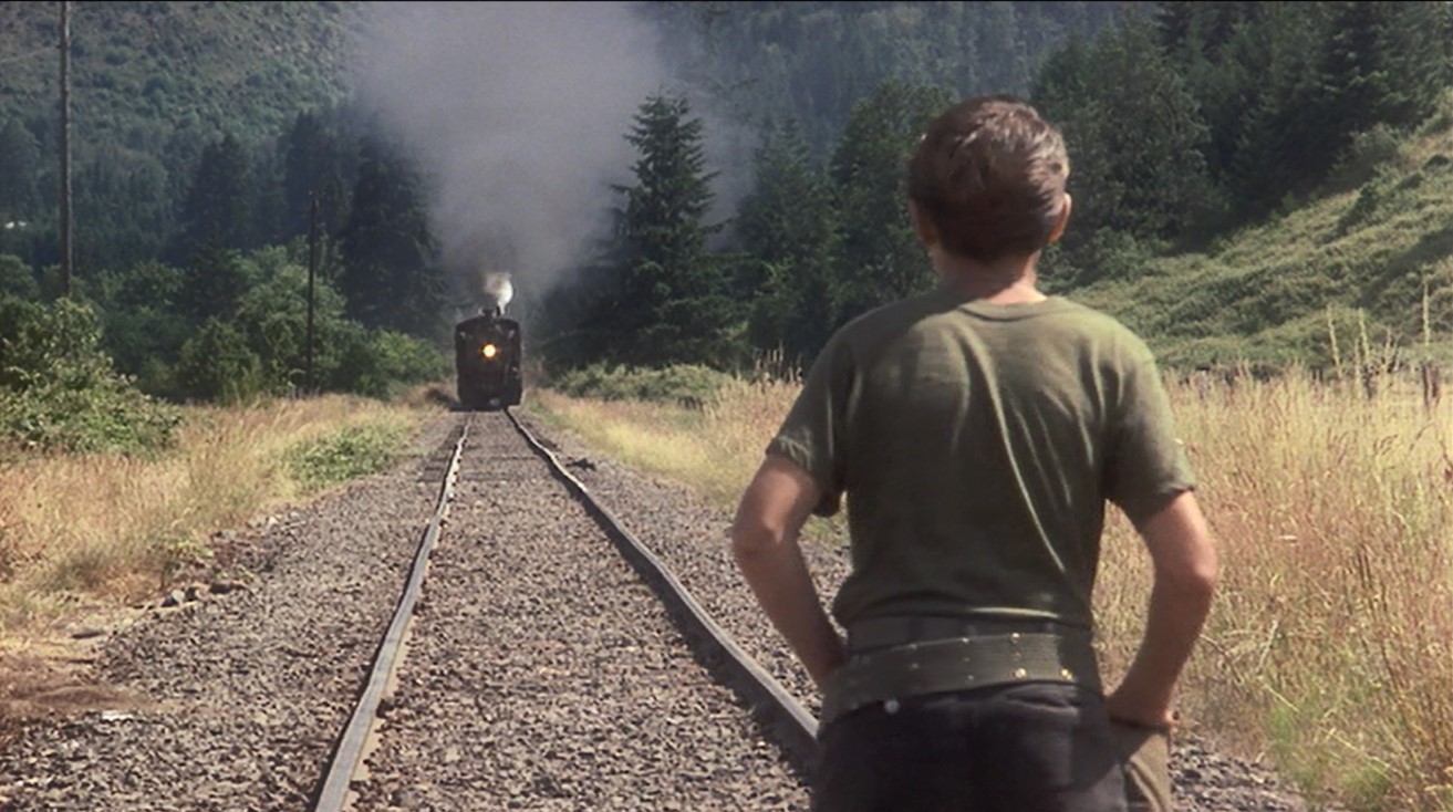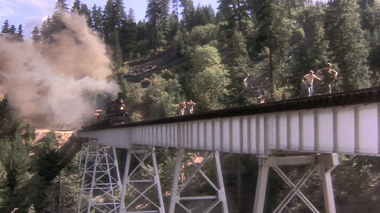 Corey (Teddy), the psycho one of the bunch, decides to play chicken with an oncoming steam engine. Finally River (Chris), has to haul Teddy’s sorry ass out from between the gauge as the 2-6-2 clanks by.