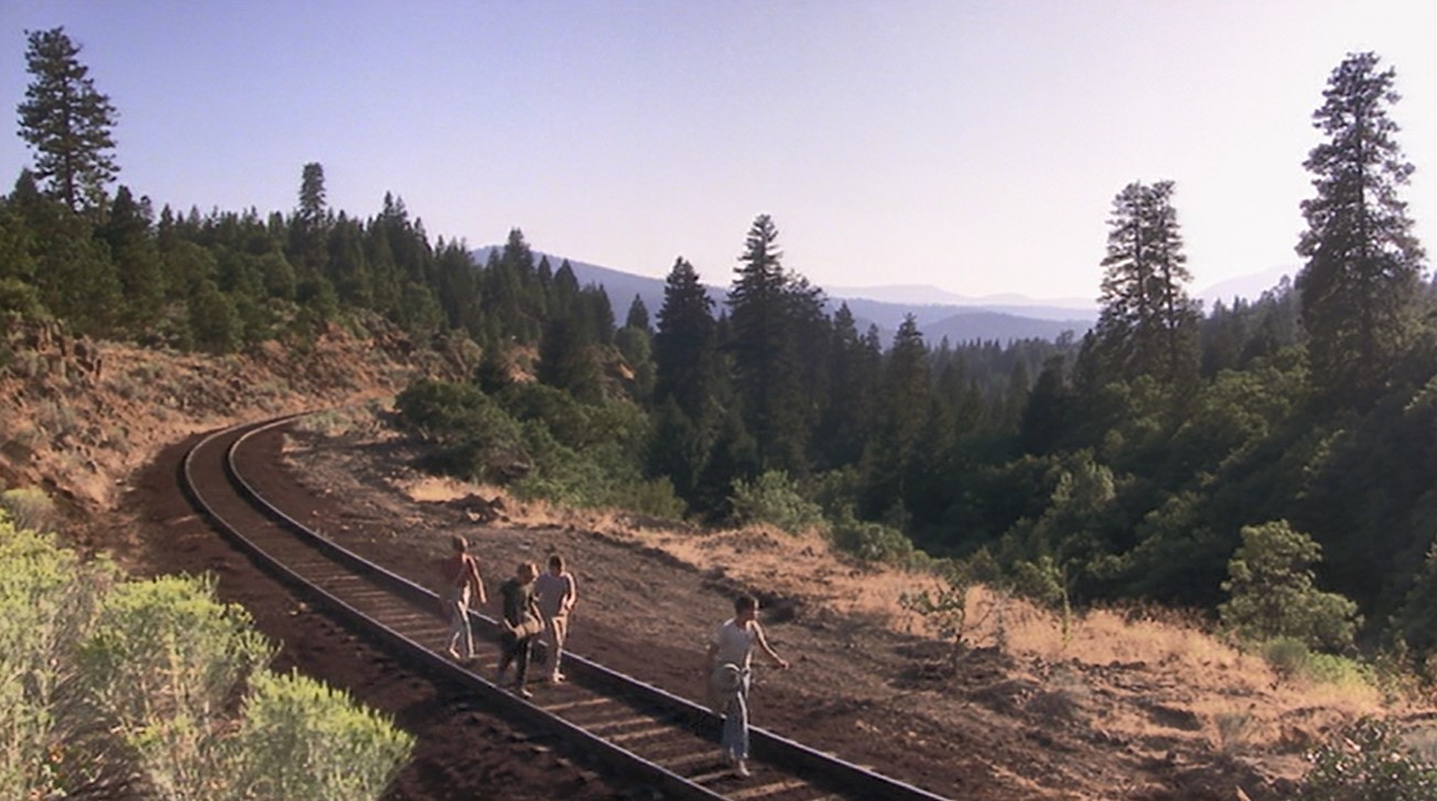 Whoa! Gordie and Vern look like goners! Filmmakers used a 600mm lens to make it look much more close. In reality, the engineer had plenty of time to see them and brake to a stop. But where’s the fun in that?