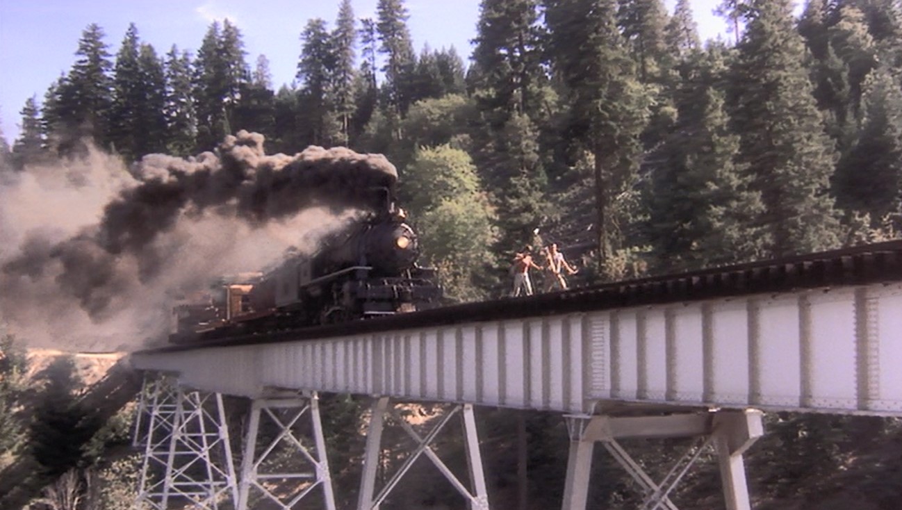 you got a few things wrong, the train that nearly hits teddy is not McCloud 25, its Yreka Western 19, the same engine from emperor of the north. And the truss bridge is on the oregon pacific and eastern, which is now a trail