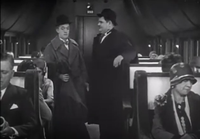 Stan Laurel and Oliver Hardy play, well, themselves with a series of sight gags at the depot and onboard a heavyweight passenger train (partially filmed in the studio). They have tickets for a Pullman “section” set up for night time use (even though it’s broad daylight for the entire trip to “Pottsville”).