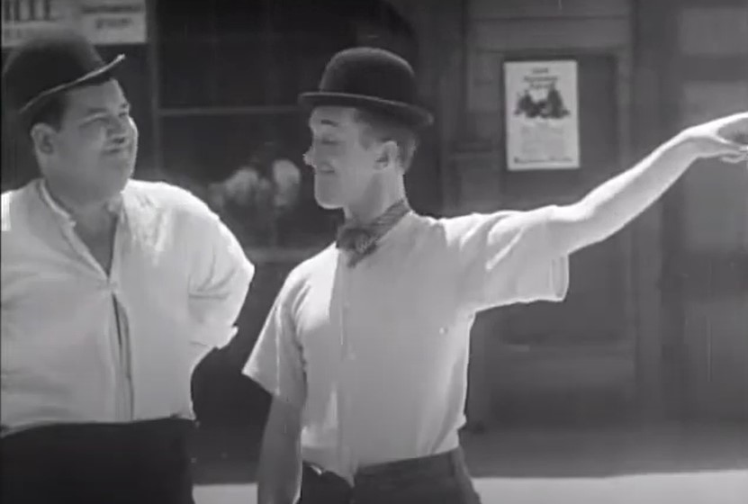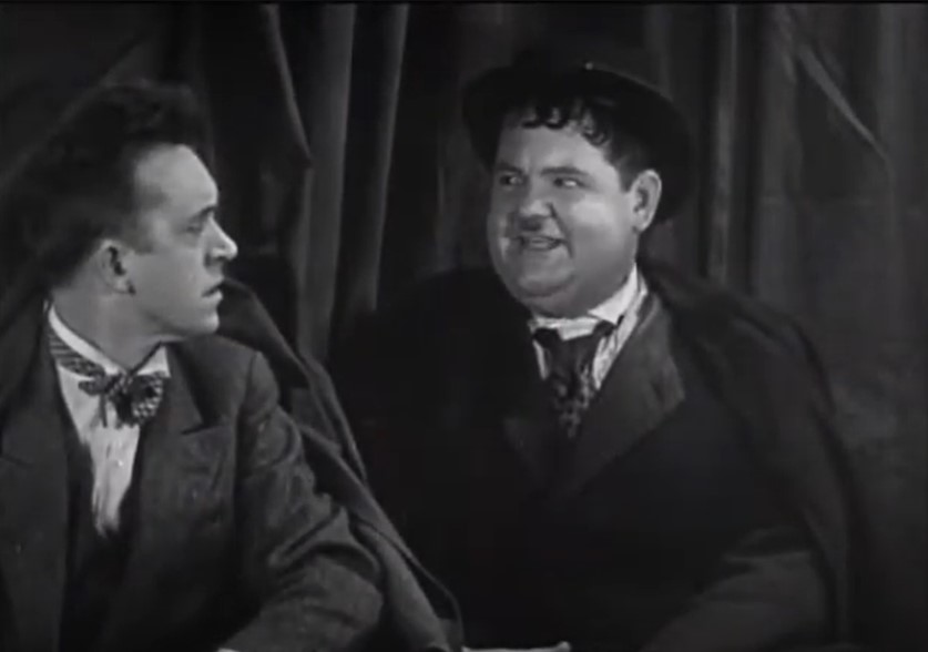 “Where’s the fiddle?” Stan answers with his trademark goofy smile and points at the departing train. To close our picture, Ollie chases Stan down the tracks as the credits roll.