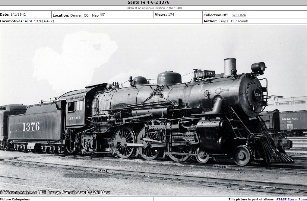 As a comparison, here is sister locomotive #1376 at Denver in 1/1/1942. Source of the picture is www.rrpicturearchives.net, taken by Guy L. Dunscomb from the collection of Wil Hata.