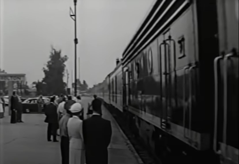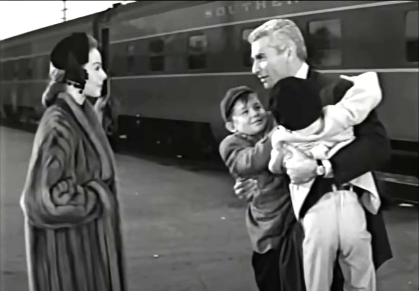 A view of the “Springfield” station. I THINK this might be the ex-SP Glendale, California depot, now a regional station for Amtrak and Metrolink. That is Jim’s long-suffering wife Diane (played by Jeanne Crain) and kids on the platform.