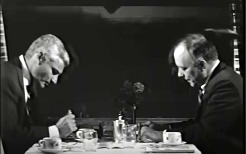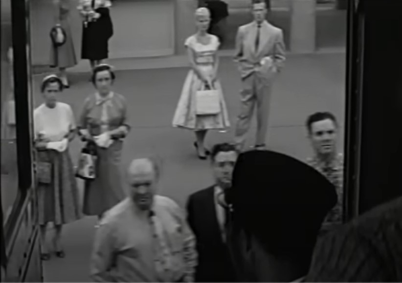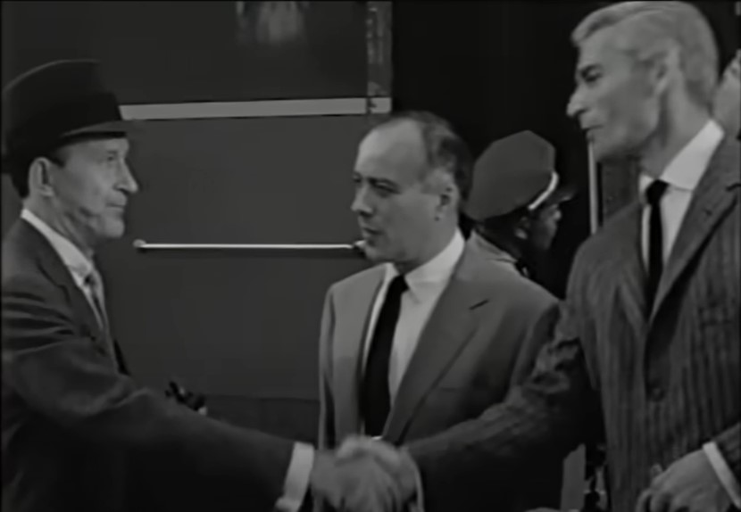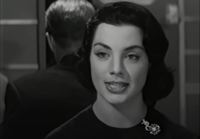 Welp, might as well have dinner. Who is this? Come, hither! The smiling face is actress Ziva Rodann (rahr-RAHR!) as “Woman on Train”. Naturally, she is seated at their table.