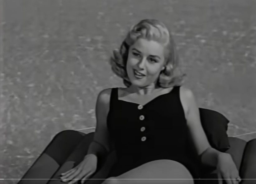Actress Elaine Stewart, (seen above playing trophy wife Charleen Reston), provides the cheesecake in her “tattered dress” and although she doesn’t appear in any train scenes, she’s bound to show up somewhere in this review. What a Lark!