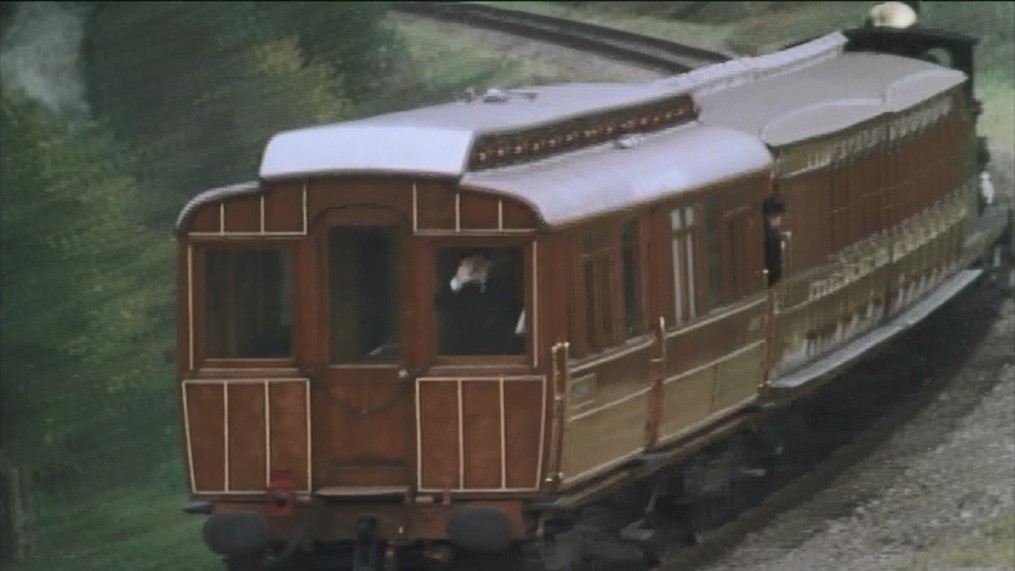“Let’s all wave at the Green Dragon!” Standard consist appears to be #492, Metropolitan Railway Full Third No. 394 and Brake Third No. 387, with Great Northern Railway Director’s Saloon No. 706 (carrying The Old Gentleman), bringing up the rear.