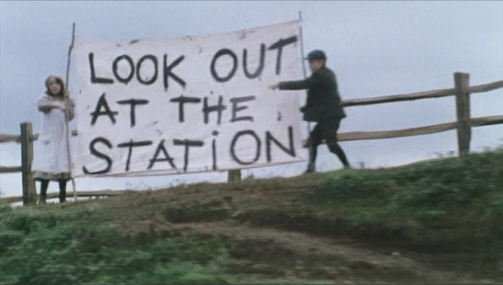 Afterwards, Perks tells tall tales as Phyllis waves the station’s red and green flags (for stopping/starting trains, perhaps?). Perks is “way out” alright…