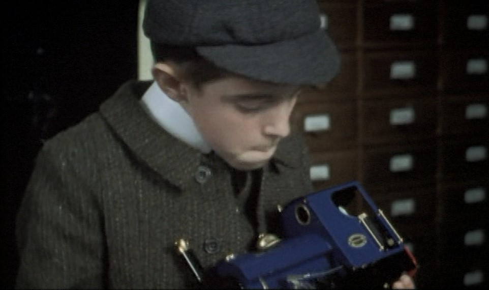 It’s Christmas morn, and Peter (who’s crazy about trains) has received a blue, live steam locomotive. Alas, the engine conks out in a fog of smoke.