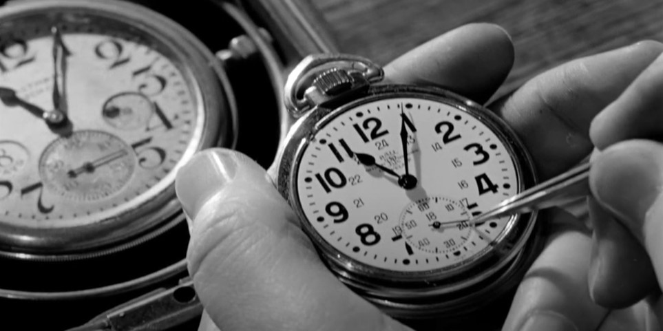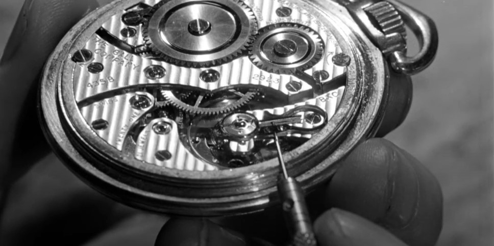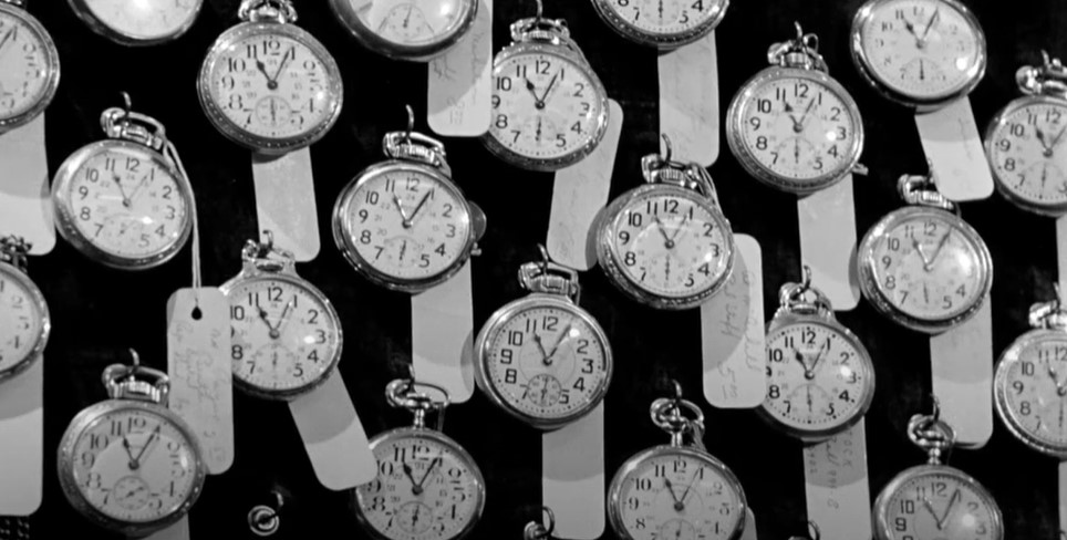 Watch Out! Having the correct time is essential for a safely-run railway. Dig this wall of railroad pocket watches at the local jeweler’s shop where railroaders come to have their time pieces adjusted. Only official railway time will do.