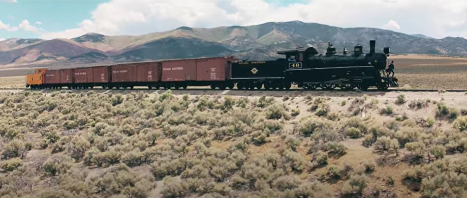 Mostly drone-filmed on the Nevada Northern Railway, Black Train features NN Ry.’s locomotive #40, a 1910 product of Baldwin Locomotive Works, towing a string of boxcars and caboose through the desert.